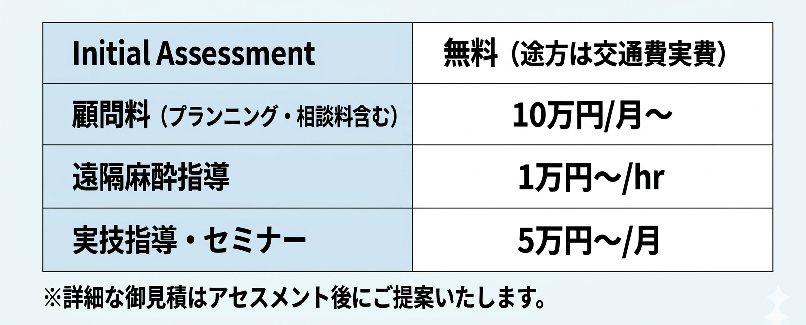 それが私たちのゴールです。専門医がずっと横にいるのではなく、貴院のスタッフだけで「異常の早期発見・初期対応」ができる自走したチームを作ることを目指します。そのためのトレーニングを徹底して行います。